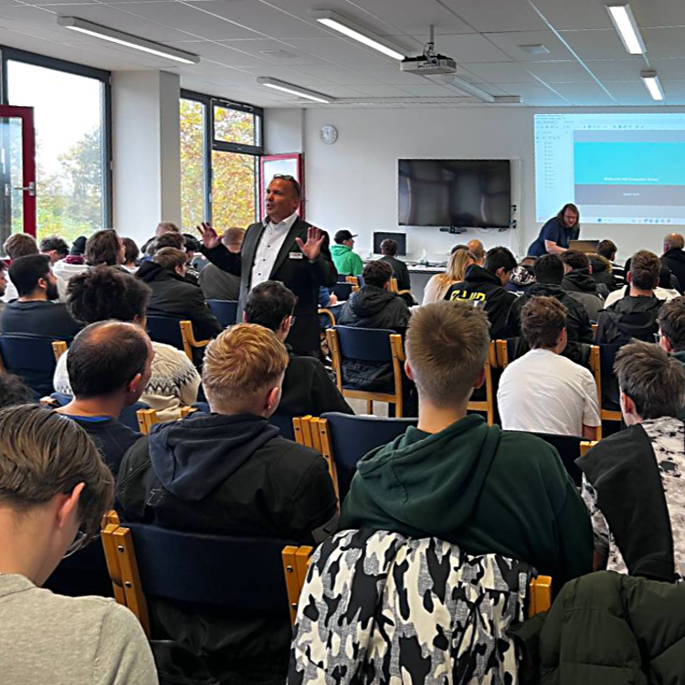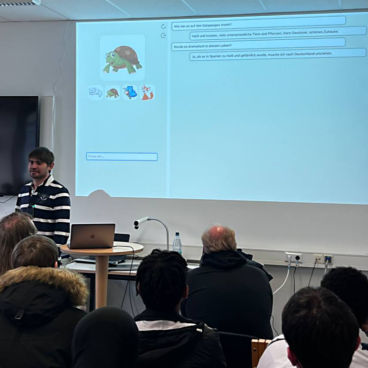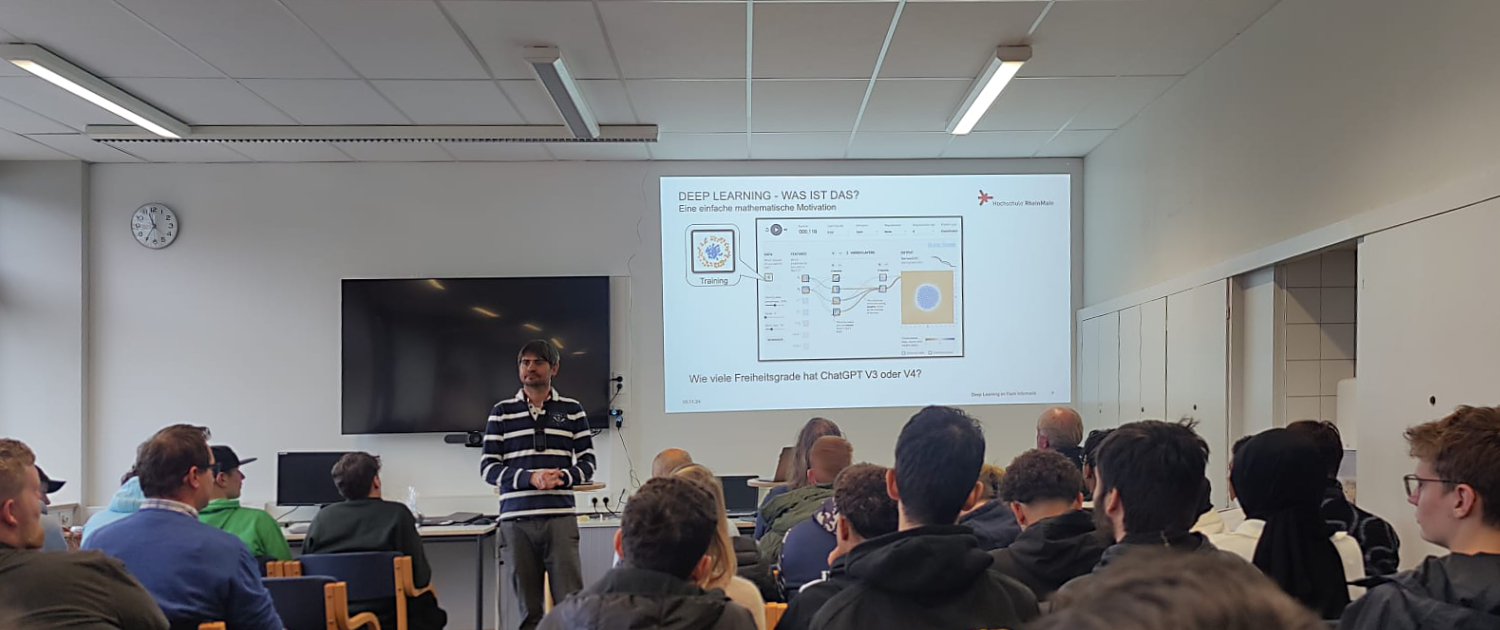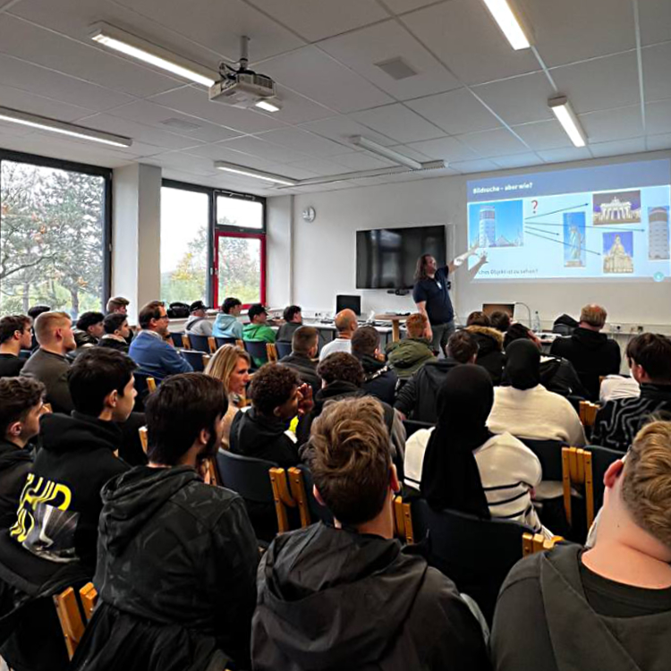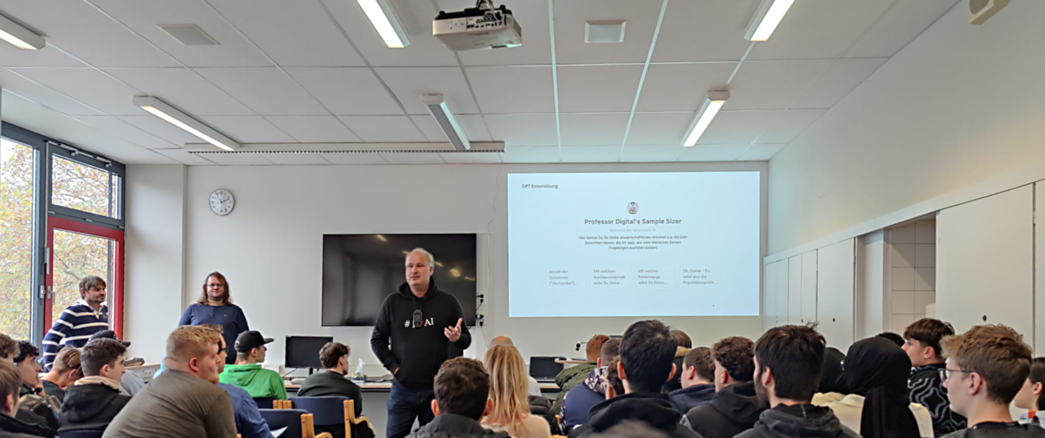 Am Dienstag, den 05.11.2024 fand von 11:00 bis 13:00 Uhr die KI- Auftaktveranstaltung im Konferenzraum A115 statt. Mehr als 130 interessierte Schülerinnen und Schüler kamen zur Veranstaltung, so dass der Raum durchaus an seine Kapazitätsgrenze kam. Ziel der Veranstaltung war es, Schülerinnen und Schüler im freien Forschen zu motivieren, sich mit ganz speziellen KI-Themen selbstständig in einer Projektarbeit zu beschäftigen.