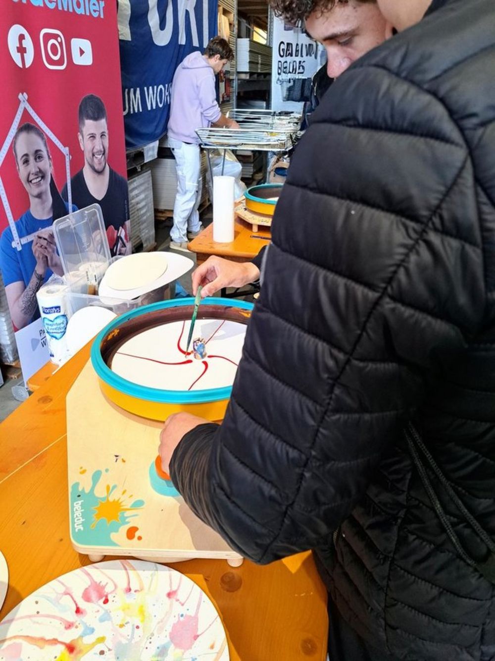 In praktischen Vorführungen konnten die Azubis direkt erleben, wie modernste Technik in der Maler- und Lackiererbranche eingesetzt wird. Ob beim Auftragen spezieller Materialien an Testwänden oder dem Ausprobieren von hochmodernen Werkzeugen – die Veranstaltung war ein echtes Erlebnis. Besonders spannend war das Testen eines Exoskeletts von Festool, das die körperliche Belastung bei schweren Arbeiten erheblich reduziert und den Teilnehmern ein völlig neues Gefühl von Arbeitserleichterung vermittelte.