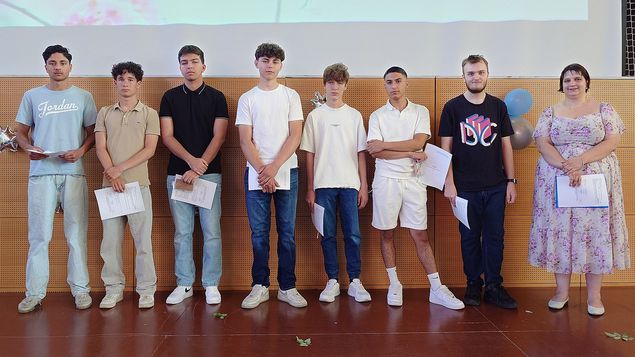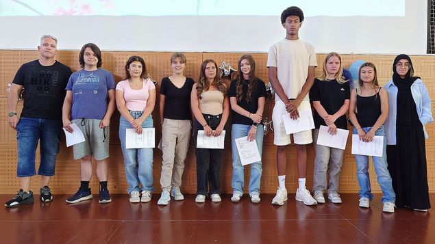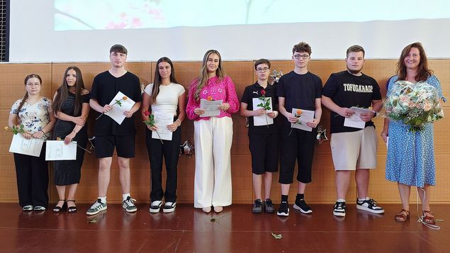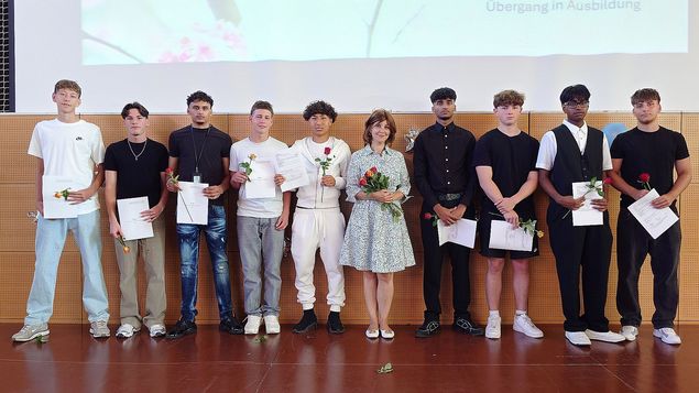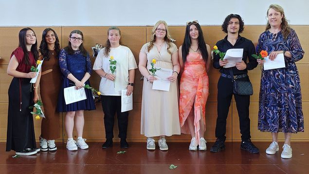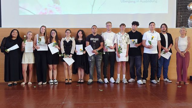An der Abschluss- bzw. Abschiedsfeier nahmen alle Schülerinnen und Schüler der Stufe I teil, auch diejenigen, die in die Stufe II wechseln. Sie verabschiedeten ihre Klassenkameradinnen und -kameraden, die die Schule verlassen, um beispielsweise einen Ausbildungsplatz anzunehmen.