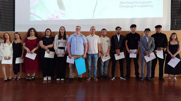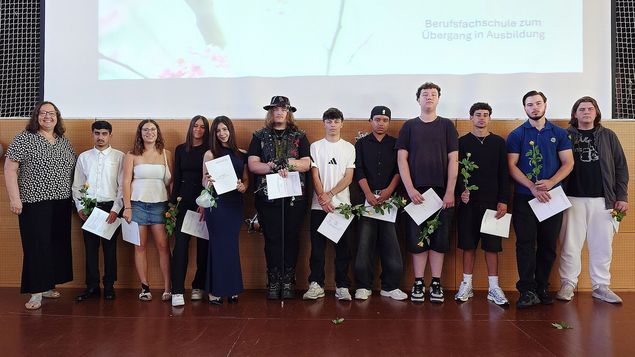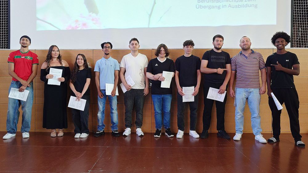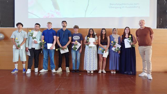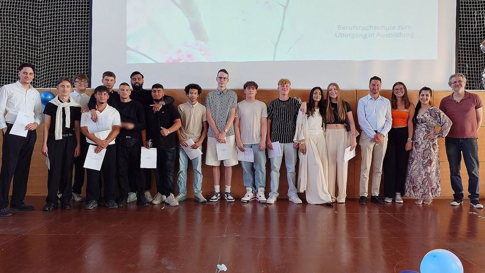 Am 4.7.2025, dem letzten Schultag, bekamen 14 Klassen der Berufsfachschule zum Übergang in Ausbildung ihre Hauptschulzeugnisse aber die Zeugnisse für den Mittleren Abschluss.