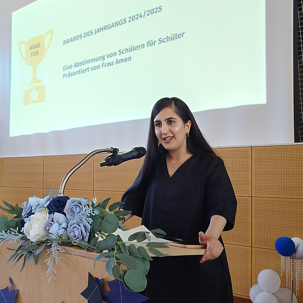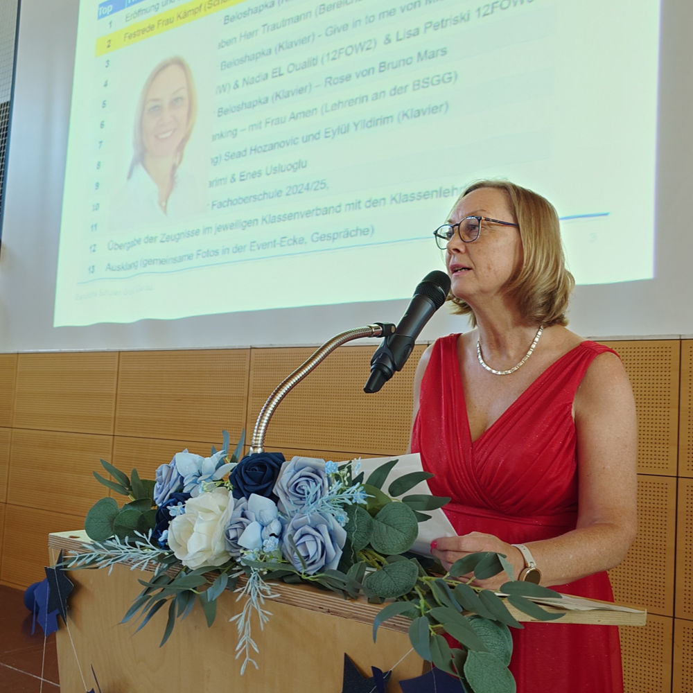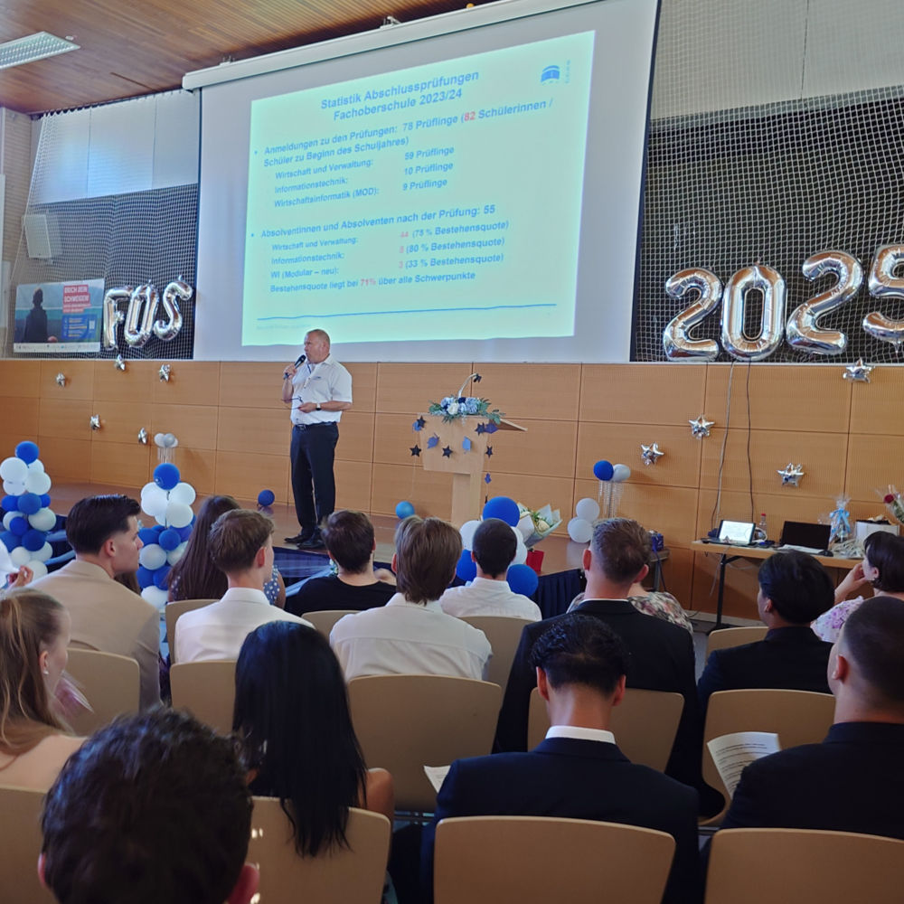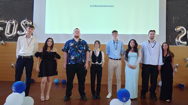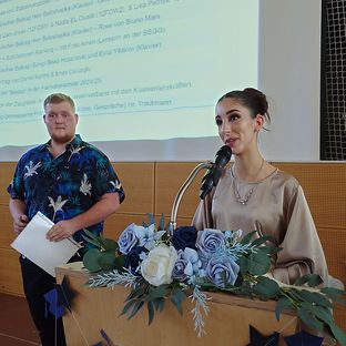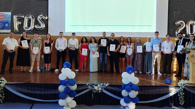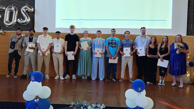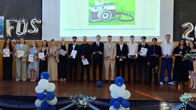 Am 02.07.2025 wurden die Absolventinnen und Absolventen des Jahrgangs 2024/2025 der Fachoberschule der Beruflichen Groß-Gerau verabschiedet. Die Feier fand in der von den Lernenden selbst dekorierten Aula statt. Ebenso wurde die Abschlussfeier selbst wurde vom Organisationteam des Jahrgangs geplant. Nadia El Oualitit und Liam Jones moderierten den Abend, welcher mit einer Rede von der Schulleiterin Frau Kämpf eingeleitet wurde. Ebenso richtete der Bereichsleiter Herr Trautmann einige Worte an die Absolventinnen und Absolventen. Beide betonten die positive Entwicklung, welche die Lernenden hervor gebracht haben, um ihren Abschluss erfolgreich zu meistern. Weiterhin wünschten die beiden allen viel Erfolg auf dem weiteren Weg.