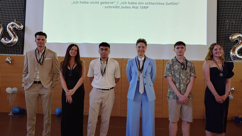 Der Jahrgang selbst organisierte mittels Ranking eine Medaillenvergabe für beispielsweise "Die Lustigsten", "Die Erklärbären", "Bromance" oder "Fehlzeitenköng/in". Als Ethiklehrkraft in drei Klassen eingesetzt, moderierte Frau Amen das Ranking mit lustigen Kommentaren.