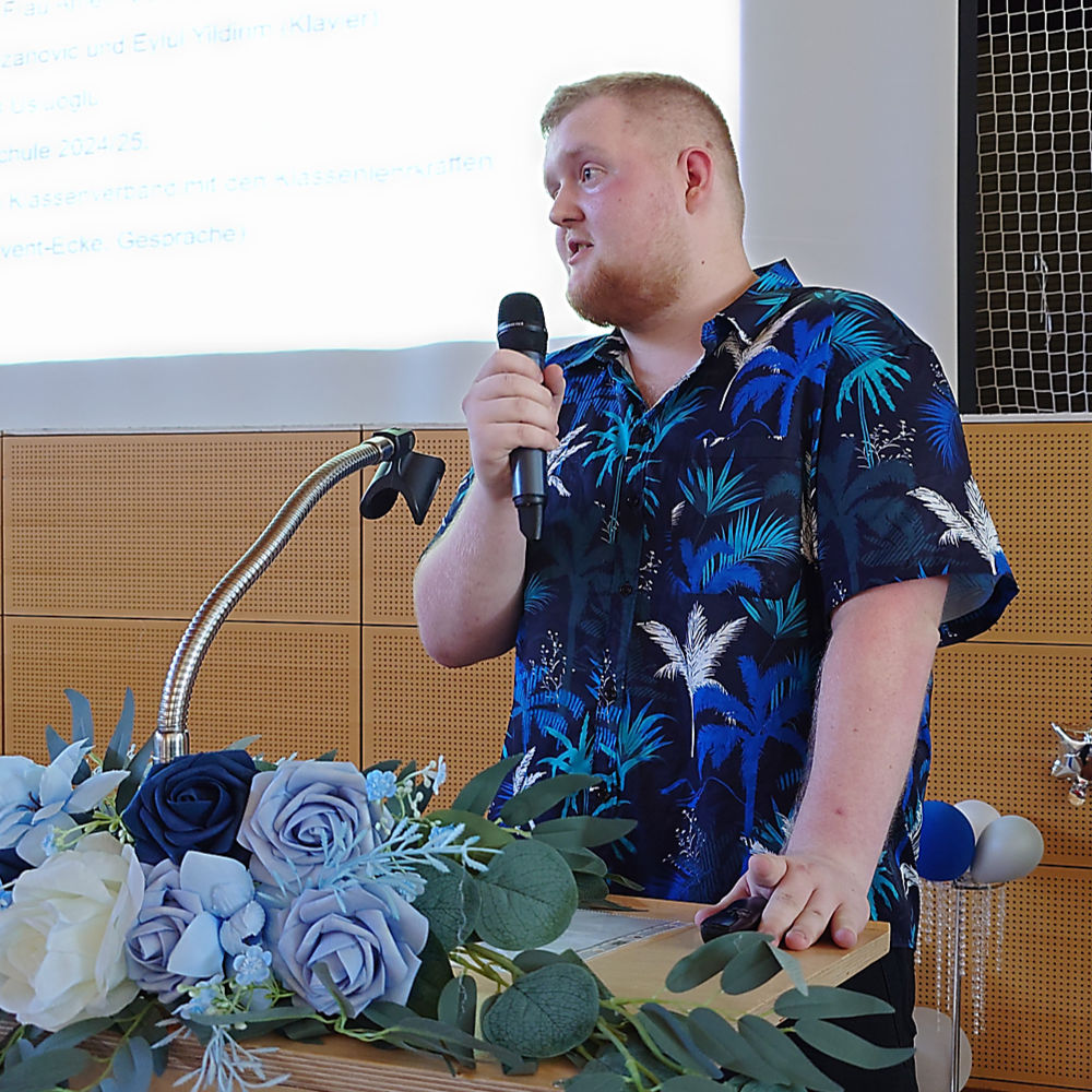 Zwischen den musikalischen Beiträgen erfolgten Redebeiträge von Daniel Karimi und Enes Usuoglo, Lisa Petrsiki sowie Nadia El Oualiti und Liam Jones. Alles Redebeiträge waren von Dank an die Mitlernenden, die Lehrkräfte sowie alle unterstützenden Personen gerichtet. In Anekdoten an die letzten zwei Schuljahre lockerten die Redenden den Abend durch Witz auf.