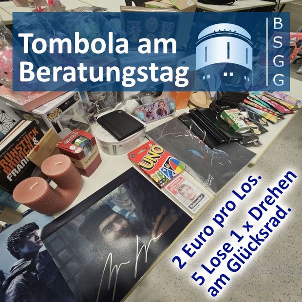 Am Beratungstag, welcher am 08.02.2025 von 10 bis 13 Uhr an den BSGG stattfindet, können im Lernzentrum Lose erworben werden. Diese Preise aus den Tombolas wurden von den Lernenden selbst, Lehrkräften der Fachoberschule sowie ortsansässigen Betrieben zur Verfügung gestellt. So zum Beispiel beteiligen sich das Glockenstübchen und die Aga’s Bar in Groß-Gerau mit Gutscheinen an der Tombola.