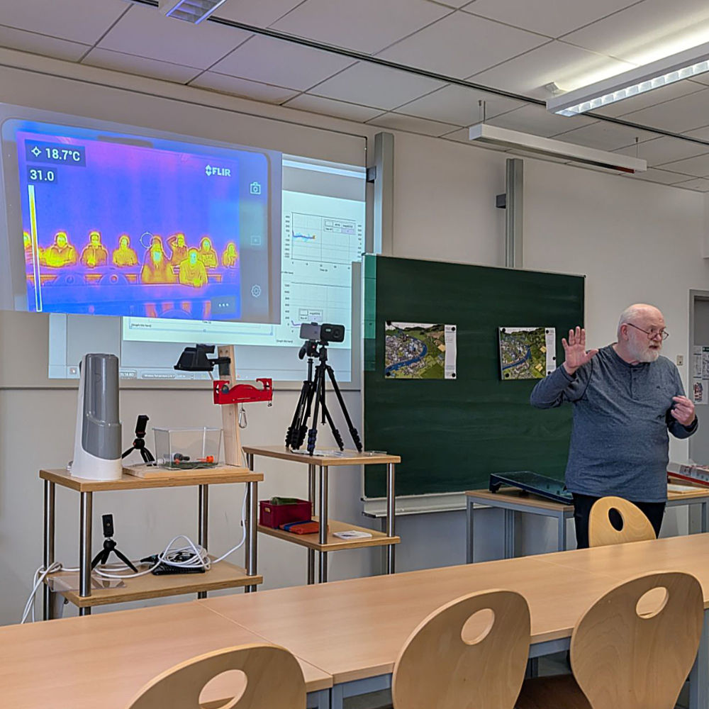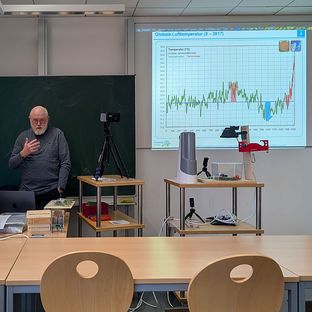 Der Gastreferent Herr Dr. Jatho erläuterte anschaulich die wissenschaftliche Vorgehensweise bei Klimaschutzprojekten. Mithilfe kleiner Experimente wurden unter anderem der CO?-Abbau, der Treibhauseffekt sowie die Wärmestrahlung verständlich erklärt. Im Anschluss entwickelten sich interessante Gesprächsrunden rund um das Thema Klimaschutz.