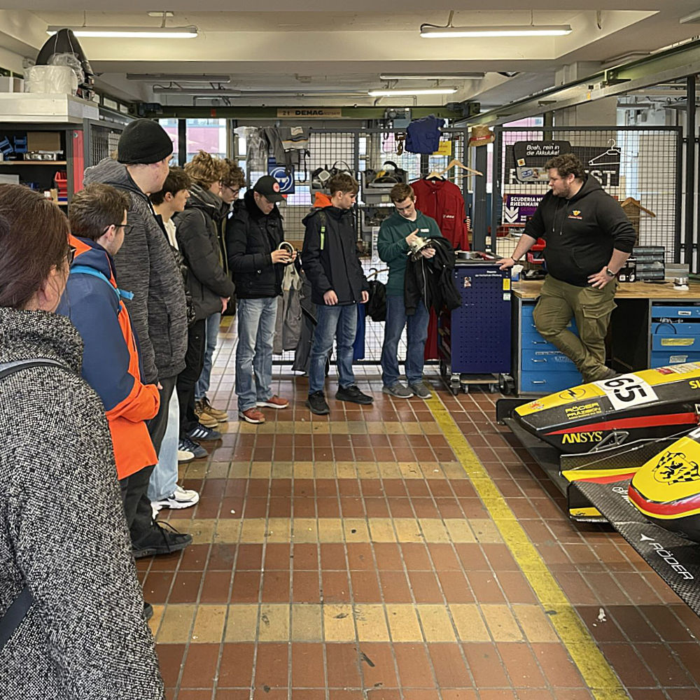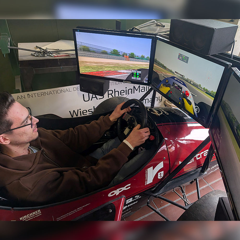 Neben diesen Programmpunkten wurden weitere spannende Projekte der Hochschule von Referentinnen, Referenten und Studierenden vorgestellt. So präsentierte sich unter anderem das Hochschule Racing Team. Studierende unterschiedlicher Fachrichtungen arbeiten hier jährlich gemeinsam an der Entwicklung, dem Bau und der Optimierung eines Formelrennwagens. Auch hier hatten die Schülerinnen und Schüler die Möglichkeit, eine Probefahrt am Simulator zu absolvieren.