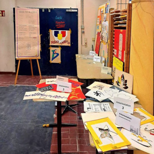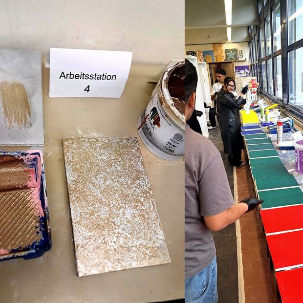 Die Teilnehmer konnten unter fachkundiger Anleitung von der Oberstufe selbst aktiv werden und erste praktische Erfahrungen sammeln – von der Vorbereitung der Untergründe über das Mischen von Farben bis hin zu verschiedenen Techniken des Anstrichs und der Gestaltung von Oberflächen (Wickeltechnik, Schwammtechnik, Schabloniertechnik. Dabei standen Kreativität und handwerkliches Geschick gleichermaßen im Fokus.