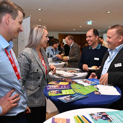 Der Bildungsminister Herr Teuber (Rheinland-Pfalz) würdigt 62 herausragende Schulen in MINT und Digitalisierung. Die Beruflichen Schulen Groß-Gerau waren hier zu dieser Festveranstaltung als Gäste eingeladen und wurden durch die Lehrer Rainer Trautmann und Holger Hansen vertreten, die auch gemeinsam das integrierte MINT-Zentrum Groß-Gerau an den Beruflichen Schulen leiten.